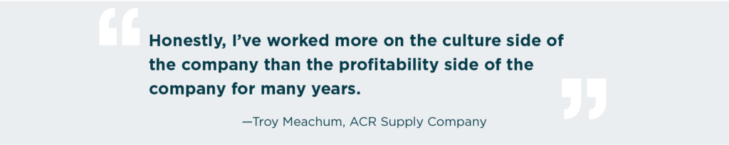 Troy Meachum, C12 member and president of ACR Supply Company in North Carolina, shared about the bottom-line impact of a flourishing employee culture on a recent episode of The Flourishing Culture Leadership podcast: